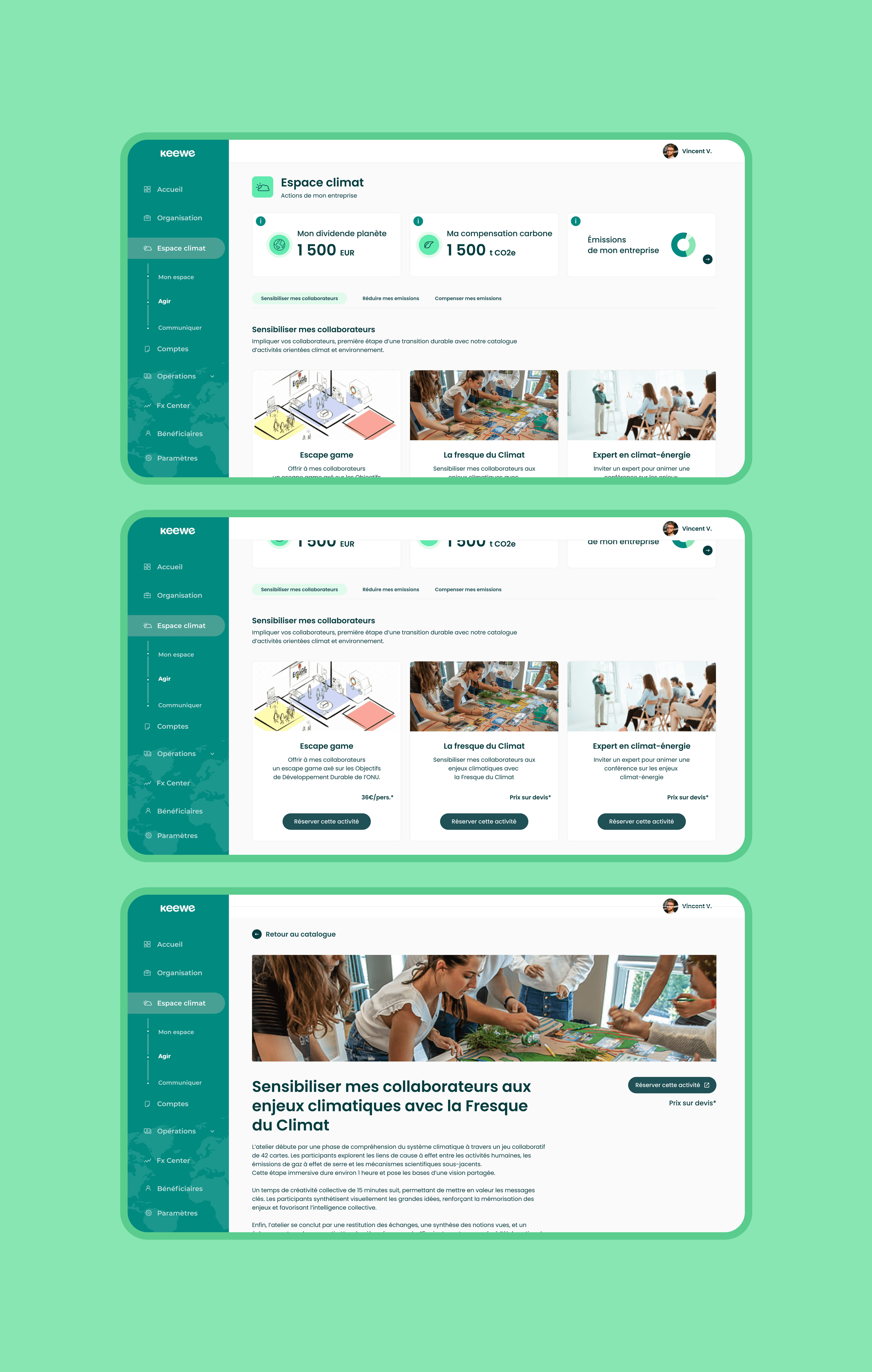 La refonte UX/UI de la plateforme Keewe a permis de structurer des parcours plus clairs et rassurants.