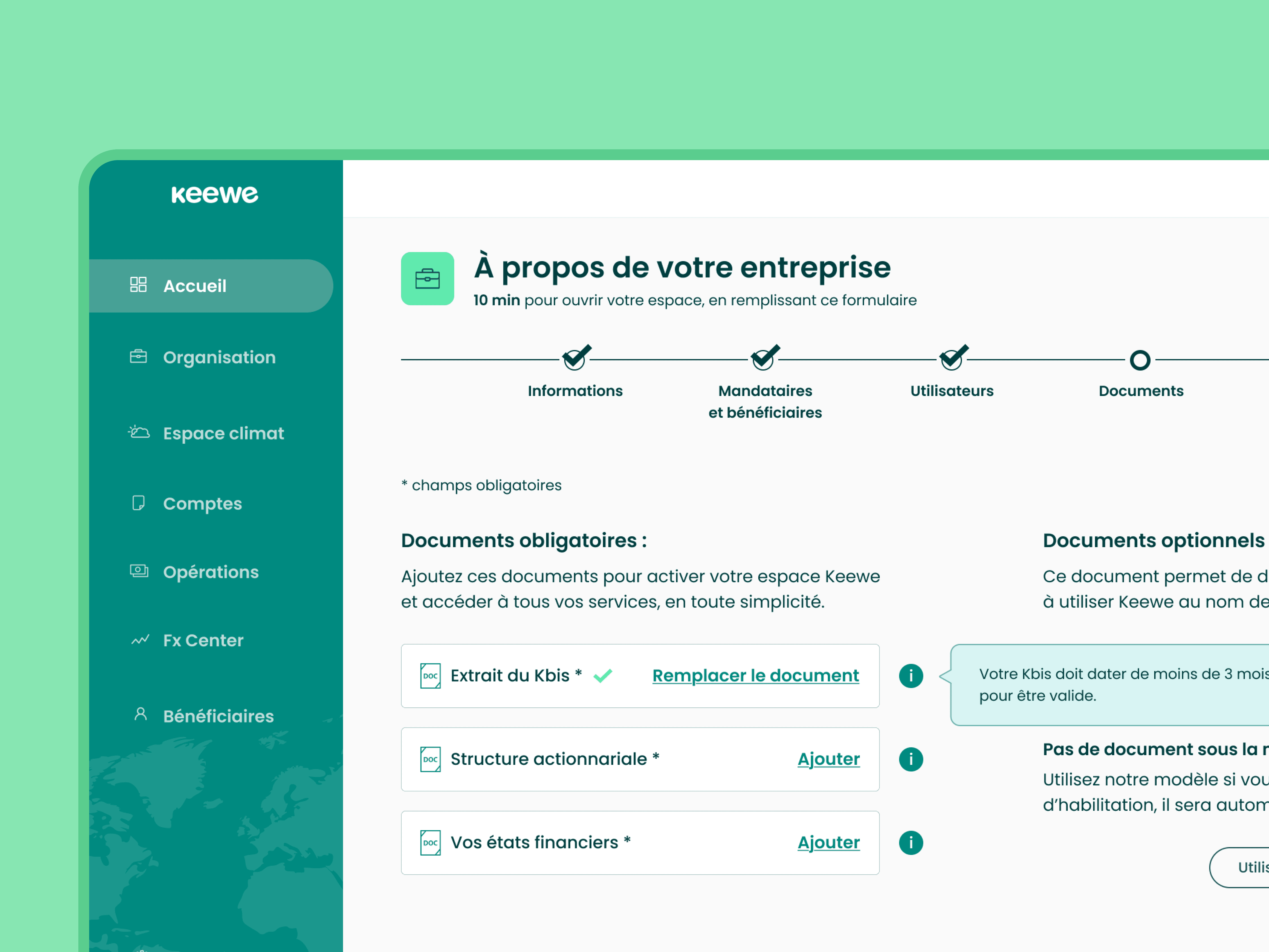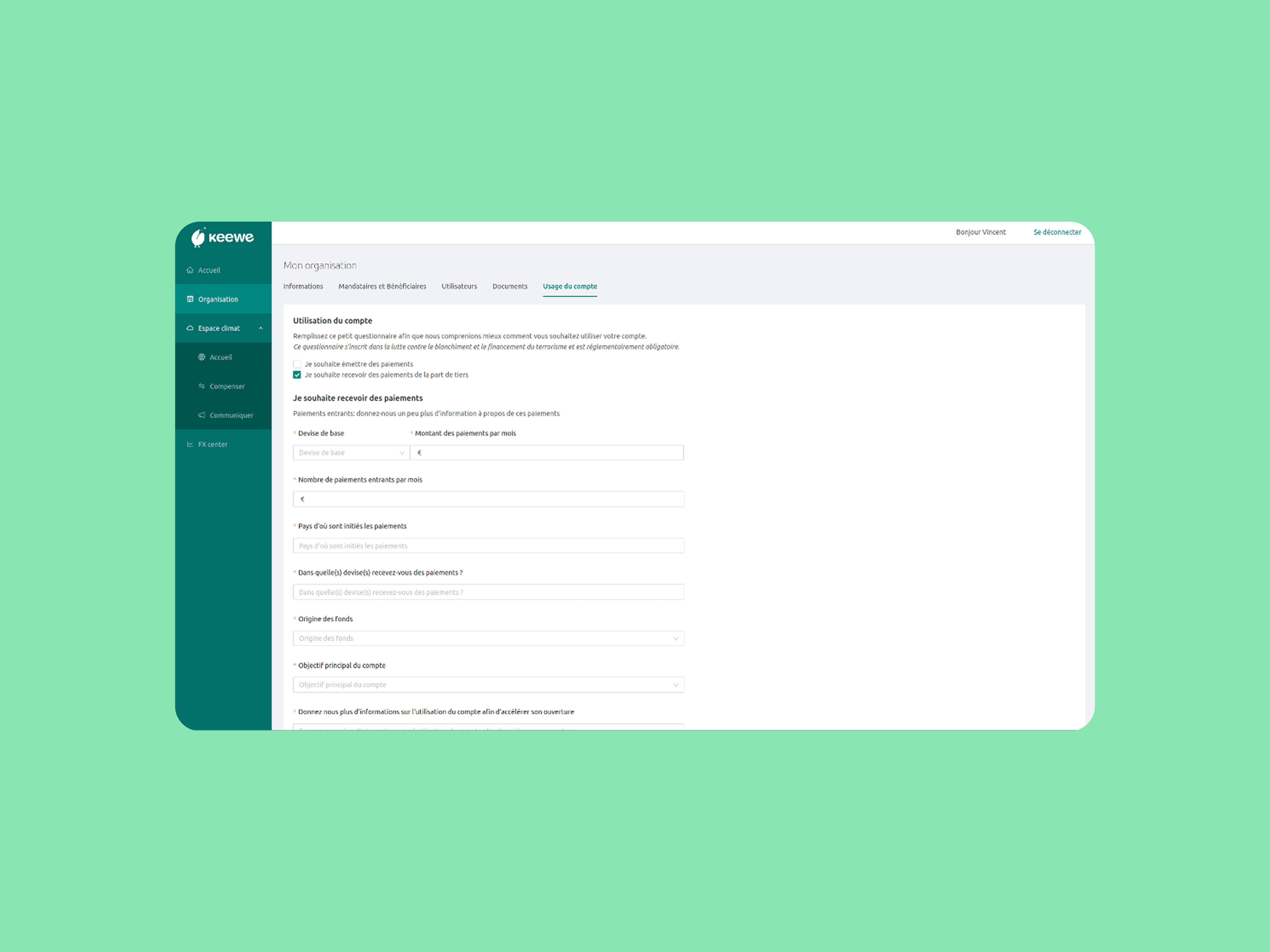 Keewe transforme chaque paiement international en une opportunité d’agir pour la planète, tout en offrant des services financiers avantageux et transparents. C’est une solution à destination des PME et ETI souhaitant allier performance économique et responsabilité environnementale.