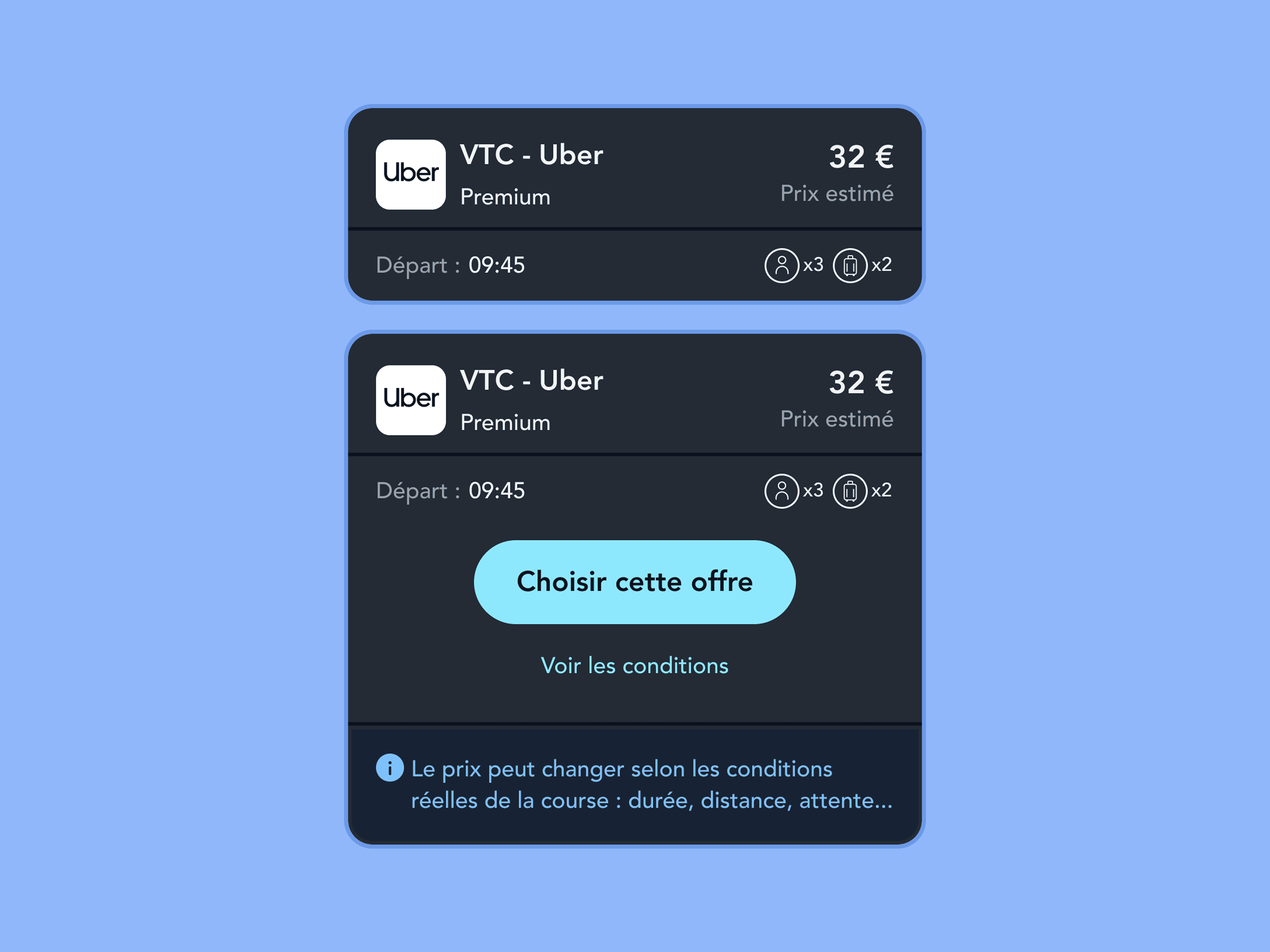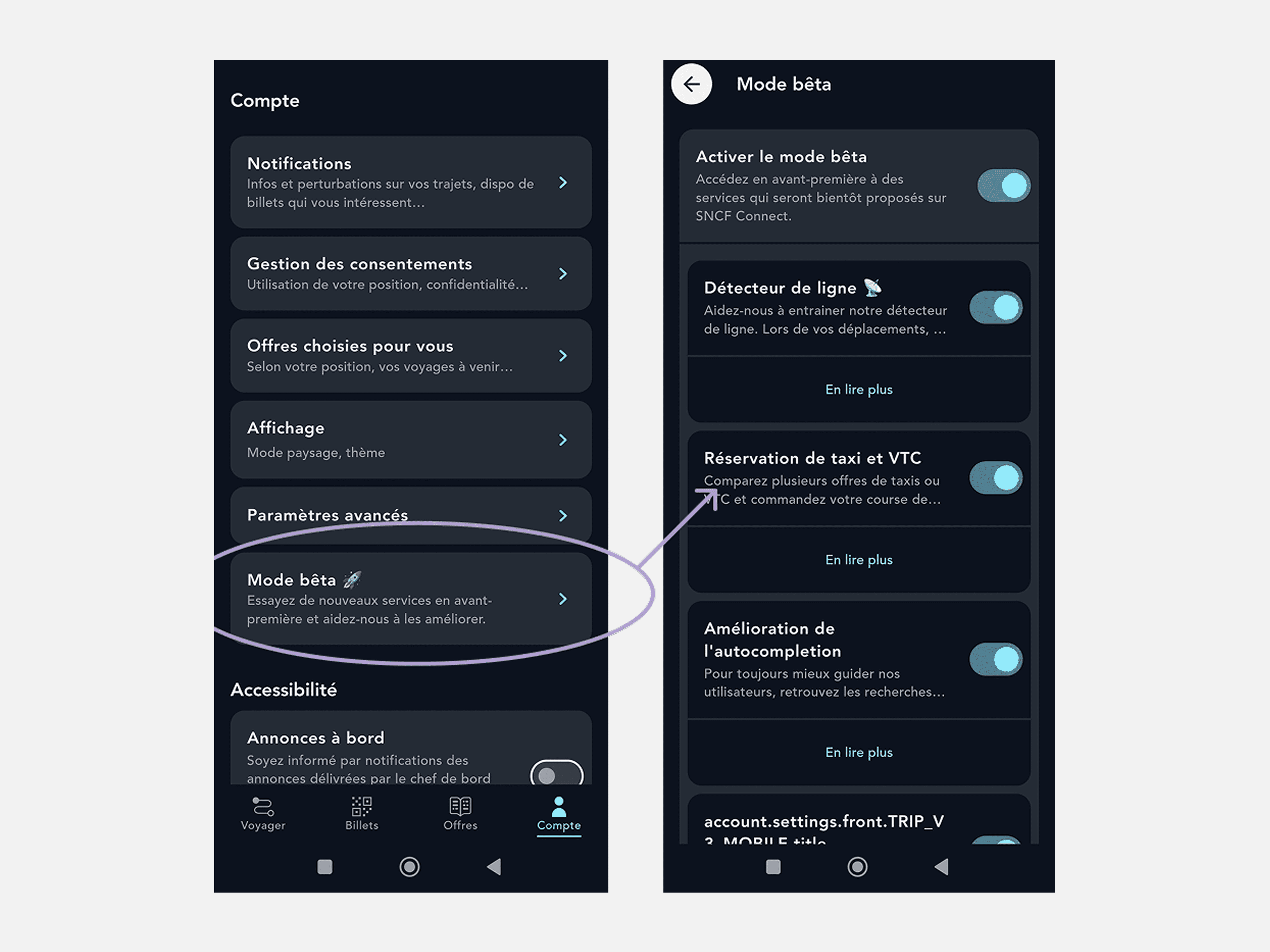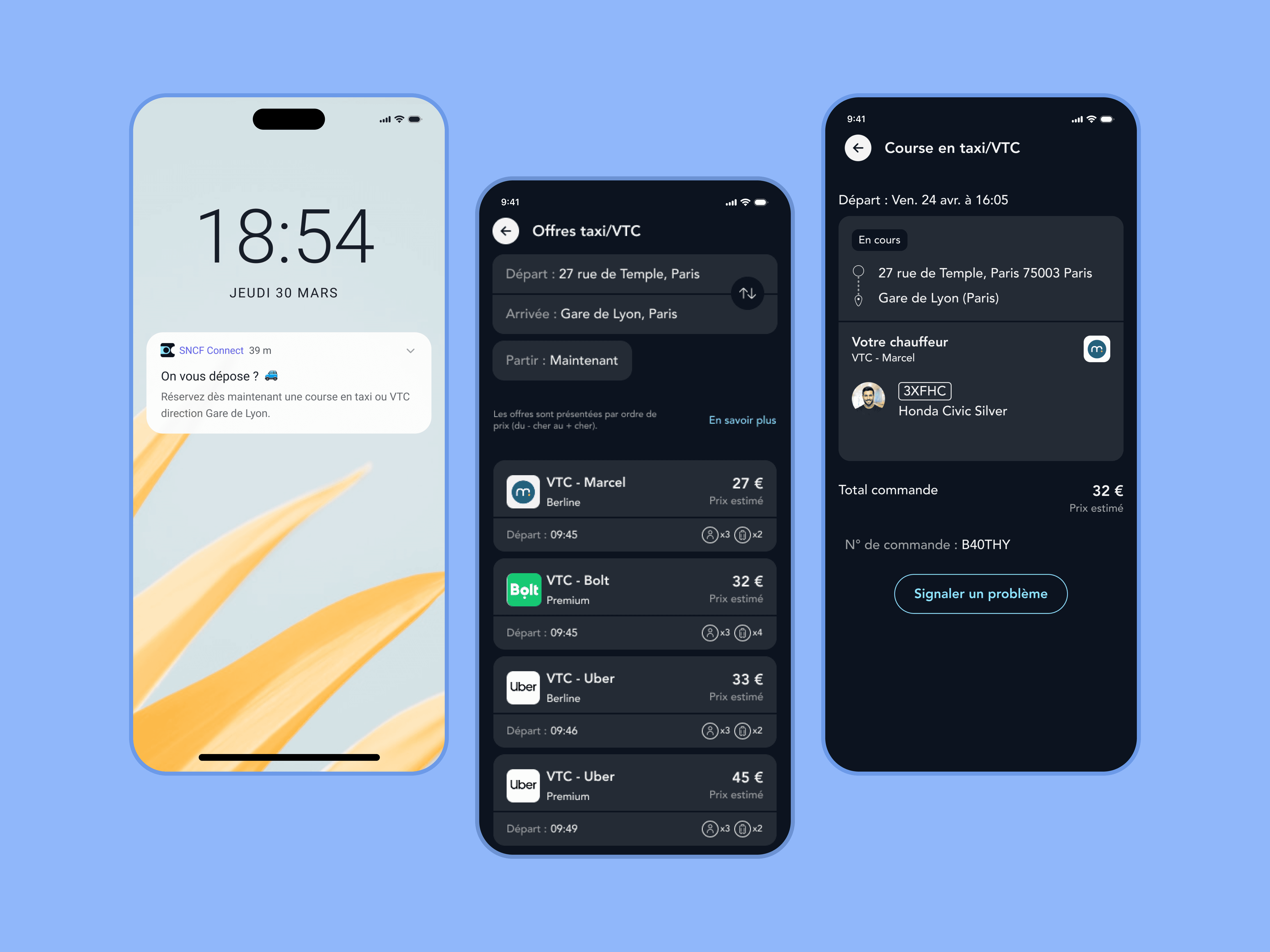 Intégration fluide dans l’app, en lien avec les trajets SNCF